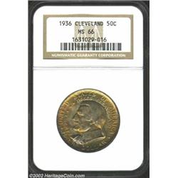 1936 50C Cleveland MS66 NGC. Bright peripheral copper-gold patina dominates the lilac color in the centers. A nicely struck and lustrous Gem with carefully preserved surfaces. Important notice: We expect to be auctioning lots at the rate of 200-250 per hour. Sometimes eBay Premier live bid software cannot keep up with that pace, so we strongly recommend that you place a realistic proxy bid now as insurance to avoid disappointment. Also please note that all Heritage/CAA lots purchased through eBay Premier carry a 20% Buyer's Premium. Please make sure you read the Terms and Conditions.