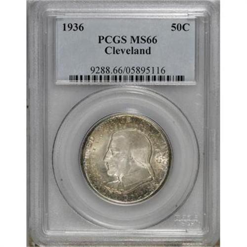 <B>1936 50C Cleveland MS66 PCGS.</B></I> PCGS Population (556/38). NGC Census: (483/50). Mintage: 50,030. Numismedia Wsl. Price for NGC/PCGS coin in MS66: $400. (#9288)<BR><BR><b>Shipping:</b> Coins & Currency (<a target="_blank" href="http://www.heritageauctions.com/common/shipping.php">view shipping information</a>)