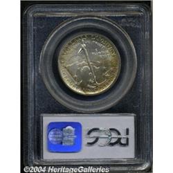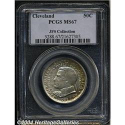 <B>1936<50C> Cleveland MS67 PCGS.</B></I> Exceptionally lustrous with much of the original mint brilliance still extant in the centers. The right portion of both obverse and reverse show rich rose, golden, and lime-green toning that adds considerably to the coin's overall eye appeal. Very seldom found in MS67 and almost never located any finer. Population: 28 in 67, 1 finer (6/04).<BR><I>From the JFS Collection, the #1 All-Time PCGS Registry Set.</B></I> <BR><BR><B>Important notice:</B> Heritage usually auctions material at the rate of 200-250 lots per hour. On some occasions eBay Live bid software or the Internet may not be able to keep up with the pace of the auction. We recommend placing a realistic absentee bid now as insurance to avoid disappointment. Occasionally the auctioneer may eliminate or reject an eBay Live bid, and the auctioneer may also reopen a lot after the close of the eBay live bidding (usually because we missed an audience bid), and may reject your bid even if it shows you as the winning bidder. By bidding via eBay Live, you agree that Heritage may award the lot to another bidder at its sole discretion under the circumstances described above or any other reasonable circumstances. Since eBay bids are not shown to us until we open the lot on the floor, we treat those bids just like floor bids. In most cases the floor responds before the eBay bid is presented to us, due to Internet lag time, so for consistency we have made it a policy that floor bids are always considered first over tie eBay live bids. Also please note that all Heritage lots purchased through eBay Live carry a 20% Buyer's Premium. Please make sure you read the Terms and Conditions before you bid. </span></font></tr></table></td></tr></table>