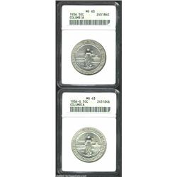 1936 50C Columbia MS63 ANACS, lightly toned with good luster and a crisp strike, the reverse border.