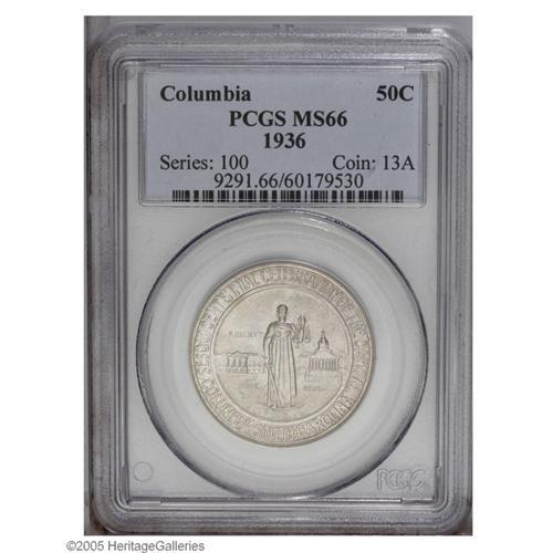1936 50C Columbia MS66 PCGS. Speckles of gold patina o 1936[50C] Columbia MS66 PCGS.