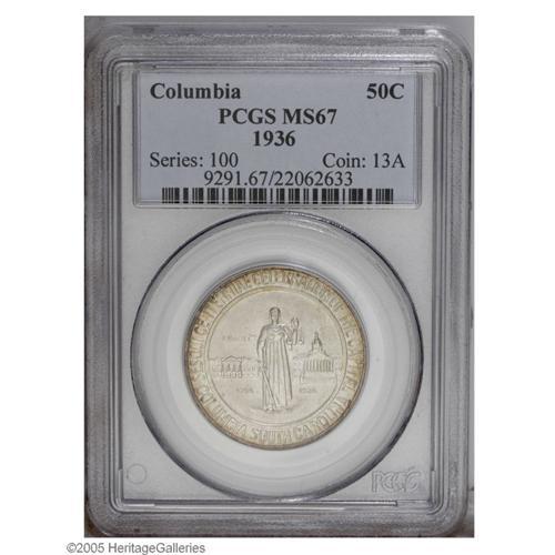 1936 50C Columbia MS67 PCGS. Virtually mark free with 1936[50C] Columbia MS67 PCGS.