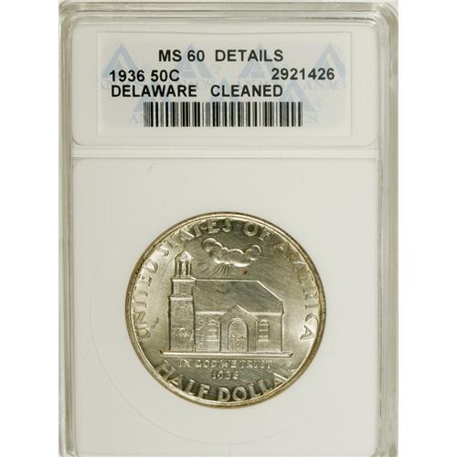 1936 50C Delaware--Cleaned--ANACS. MS60 Details. N