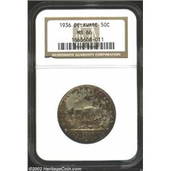 1936 50C Delaware MS66 NGC. Deep apple-green and maroon patina. A sharply struck Gem that has modest