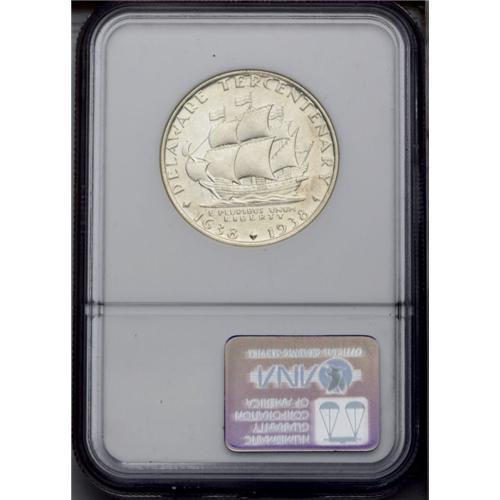 <B>1936<50C> Delaware MS66 NGC.</B></I> Essentially brilliant with a satiny sheen that is virtually uninterrupted by contact marks. <BR><BR><B>Important notice:</B> Heritage usually auctions material at the rate of 200-250 lots per hour. On some occasions eBay Live bid software or the Internet may not be able to keep up with the pace of the auction. We recommend placing a realistic absentee bid now as insurance to avoid disappointment. Occasionally the auctioneer may eliminate or reject an eBay Live bid, and the auctioneer may also reopen a lot after the close of the eBay live bidding (usually because we missed an audience bid), and may reject your bid even if it shows you as the winning bidder. By bidding via eBay Live, you agree that Heritage may award the lot to another bidder at its sole discretion under the circumstances described above or any other reasonable circumstances. Since eBay bids are not shown to us until we open the lot on the floor, we treat those bids just like floor bids. In most cases the floor responds before the eBay bid is presented to us, due to Internet lag time, so for consistency we have made it a policy that floor bids are always considered first over tie eBay live bids. Also please note that all Heritage lots purchased through eBay Live carry a 20% Buyer's Premium. Please make sure you read the Terms and Conditions before you bid. This lot is being auctioned in conjunction with a live floor auction by Heritage Galleries & Auctioneers. All final auction and invoice information will be supplied by Heritage Galleries & Auctioneers, and all other information should be considered preliminary. Lot:4931 <BR><BR><B>Winning Notification and Billing:</B> After the FINAL session in this auction is complete, Heritage will send e-mail and snail mail invoices. This process normally takes several days. All final auction and invoice information will be supplied by Heritage Galleries & Auctioneers, and all other information should be considered preliminary. <BR><BR>This auction will be conducted on a live auction floor and over the Internet through eBay Live. If you choose to place an absentee bid, please take a moment to <font color='#0000ff'><u><a href='http://pages.ebay.com/liveauctions/help/before/laabsentee.html'>learn how eBay Live absentee bidding works</a></u></font><font color='#000000'>