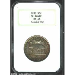 1936 50C Delaware MS66 NGC. The obverse has lovely gold, green, orange, and violet peripheral colors