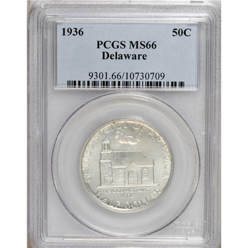 <B>1936 50C Delaware MS66 PCGS.</B></I> PCGS Population (559/61). NGC Census: (384/70). Mintage: 20,993. Numismedia Wsl. Price: $630. (#9301)<BR><BR><b>Shipping:</b> Coins & Currency (<a target="_blank" href="http://www.heritageauctions.com/common/shipping.php">view shipping information</a>)