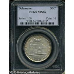 1936 50C Delaware MS66 PCGS. Speckled gold-brown t <B>1936 50C Delaware MS66 PCGS.</B></I> Speckled gold-brown toning gravitates toward the margins. Well struck, with no serious contact marks to report. <BR><BR><B>Important notice:</B> Heritage usually auctions material at the rate of 200-250 lots per hour. On some occasions eBay Live bid software or the Internet may not be able to keep up with the pace of the auction. We recommend placing a realistic absentee bid now as insurance to avoid disappointment. Occasionally the auctioneer may eliminate or reject an eBay Live bid, and the auctioneer may also reopen a lot after the close of the eBay live bidding (usually because we missed an audience bid), and may reject your bid even if it shows you as the winning bidder. By bidding via eBay Live, you agree that Heritage may award the lot to another bidder at its sole discretion under the circumstances described above or any other reasonable circumstances. Since eBay bids are not shown to us until we open the lot on the floor, we treat those bids just like floor bids. In most cases the floor responds before the eBay bid is presented to us, due to Internet lag time, so for consistency we have made it a policy that floor bids are always considered first over tie eBay live bids. Also please note that all Heritage lots purchased through eBay Live carry a 20% Buyer's Premium. Please make sure you read the Terms and Conditions before you bid. This lot is being auctioned in conjunction with a live floor auction by Heritage Galleries & Auctioneers. All final auction and invoice information will be supplied by Heritage Galleries & Auctioneers, and all other information should be considered preliminary. Lot:7890