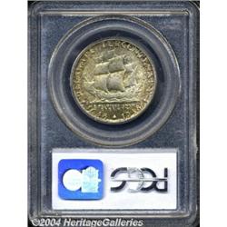 <B>1936<50C> Delaware MS66 PCGS.</B></I> Struck up with original tab toning. The obverse shows forest-green and deep amber color along the margins while the reverse shows much of the same coloration, only strewn across the entirety of its surfaces. <BR><BR><B>Important notice:</B> Heritage usually auctions material at the rate of 200-250 lots per hour. On some occasions eBay Live bid software or the Internet may not be able to keep up with the pace of the auction. We recommend placing a realistic absentee bid now as insurance to avoid disappointment. Occasionally the auctioneer may eliminate or reject an eBay Live bid, and the auctioneer may also reopen a lot after the close of the eBay live bidding (usually because we missed an audience bid), and may reject your bid even if it shows you as the winning bidder. By bidding via eBay Live, you agree that Heritage may award the lot to another bidder at its sole discretion under the circumstances described above or any other reasonable circumstances. Since eBay bids are not shown to us until we open the lot on the floor, we treat those bids just like floor bids. In most cases the floor responds before the eBay bid is presented to us, due to Internet lag time, so for consistency we have made it a policy that floor bids are always considered first over tie eBay live bids. Also please note that all Heritage lots purchased through eBay Live carry a 20% Buyer's Premium. Please make sure you read the Terms and Conditions before you bid. </span></font></tr></table></td></tr></table>
