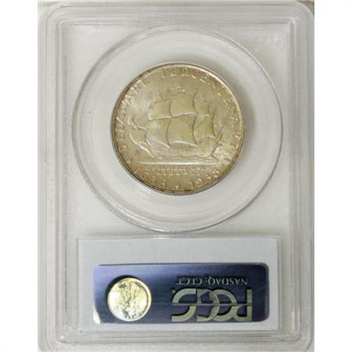 <B>1936 50C Delaware MS66 PCGS.</B></I> Frosty and softly lustrous with typical detail. A crescent of sunset-orange toning appears at the right obverse rim, while the reverse has speckles of similar patina. A pleasing example of this colonial history commemorative.<BR><BR><b>Shipping:</b> Coins & Currency (<a target="_blank" href="http://www.heritageauctions.com/common/shipping.php">view shipping information</a>)