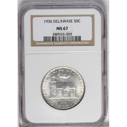 1936 50C Delaware MS67 NGC. A nicely struck example wi