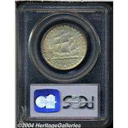 <table><tr><td><table><tr><td>1936 50C Delaware MS67 PCGS. Fully struck with beautiful shimmering luster and highly attractive russet and apricot toning near the borders of each side. Exquisitely preserved, with light chatter near the reverse center, and a couple of very trivial contact marks on the obverse. Population: 54 in 67, 0 finer (3/04). <BR><BR><B>Important notice:</B> Heritage usually auctions material at the rate of 200-250 lots per hour. On some occasions eBay Live bid software or the Internet may not be able to keep up with the pace of the auction. We recommend placing a realistic absentee bid now as insurance to avoid disappointment. Occasionally the auctioneer may eliminate or reject an eBay Live bid, and the auctioneer may also reopen a lot after the close of the eBay live bidding (usually because we missed an audience bid), and may reject your bid even if it shows you as the winning bidder. By bidding via eBay Live, you agree that Heritage may award the lot to another bidder at its sole discretion under the circumstances described above or any other reasonable circumstances. Since eBay bids are not shown to us until we open the lot on the floor, we treat those bids just like floor bids. In most cases the floor responds before the eBay bid is presented to us, due to Internet lag time, so for consistency we have made it a policy that floor bids are always considered first over tie eBay live bids. Also please note that all Heritage lots purchased through eBay Live carry a 20% Buyer's Premium. Please make sure you read the Terms and Conditions before you bid. <BR><BR><B>IMPORTANT ANNOUNCEMENT ABOUT RESERVES:</B> Heritage now divulges all reserves on its web site 7 days before every auction. If you want to know whether the reserve on this lot has been met, and if not, what the reserve amount is, please visit this lot page on the HeritageCoin.com web site, or email: bid@HeritageGalleries.com </span></font></td></tr></table></td></tr></table>