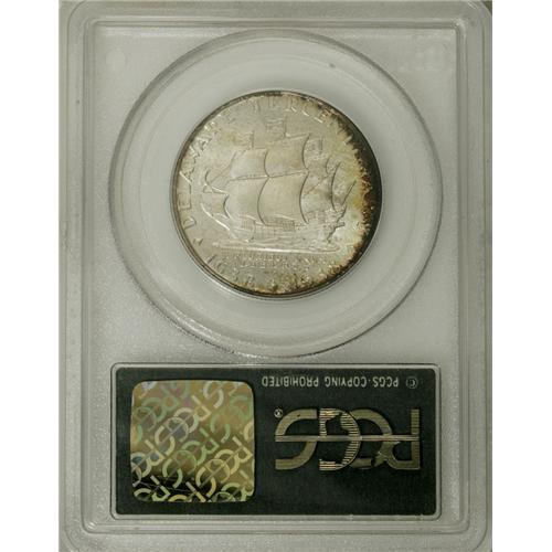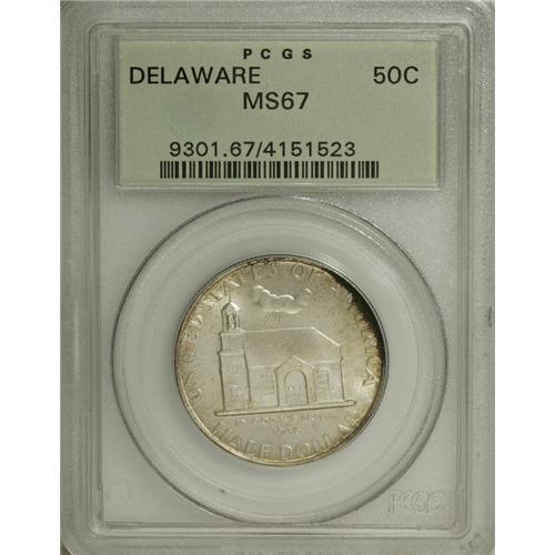<B>1936 50C Delaware MS67 PCGS.</B></I> Softly lustrous and remarkably well-preserved with elegant blue-gray patina over most of the coin and a crescent of deep crimson at the right rim on each side. Tied for the finest example graded by PCGS (1/07).<BR><BR><b>Shipping:</b> Coins & Currency (<a target="_blank" href="http://www.heritageauctions.com/common/shipping.php">view shipping information</a>)