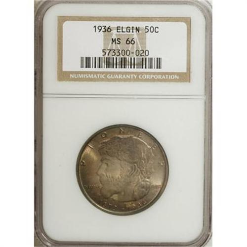 <B>1936 50C Elgin MS66 NGC.</B></I> NGC Census: (697/111). PCGS Population (967/113). Mintage: 20,015. Numismedia Wsl. Price for NGC/PCGS coin in MS66: $436. (#9303)<BR><BR><b>Shipping:</b> Coins & Currency (<a target="_blank" href="http://www.heritageauctions.com/common/shipping.php">view shipping information</a>\)