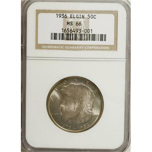 <B>1936 50C Elgin MS66 NGC.</B></I> NGC Census: (697/111). PCGS Population (967/113). Mintage: 20,015. Numismedia Wsl. Price for NGC/PCGS coin in MS66: $436. (#9303)<BR><BR><b>Shipping:</b> Coins & Currency (<a target="_blank" href="http://www.heritageauctions.com/common/shipping.php">view shipping information</a>\)