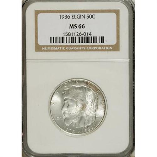<B>1936 50C Elgin MS66 NGC.</B></I> NGC Census: (712/111). PCGS Population (963/112). Mintage: 20,015. Numismedia Wsl. Price for NGC/PCGS coin in MS66: $436. (#9303)<BR><BR><b>Shipping:</b> Coins & Currency (<a target="_blank" href="http://www.heritageauctions.com/common/shipping.php">view shipping information</a>)
