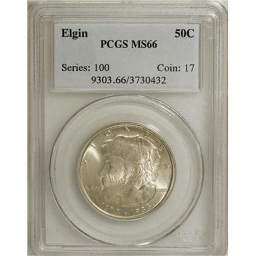 <B>1936 50C Elgin MS66 PCGS.</B></I> PCGS Population (961/112). NGC Census: (706/111). Mintage: 20,015. Numismedia Wsl. Price for NGC/PCGS coin in MS66: $436. (#9303)<BR><BR><b>Shipping:</b> Coins & Currency (<a target="_blank" href="http://www.heritageauctions.com/common/shipping.php">view shipping information</a>)