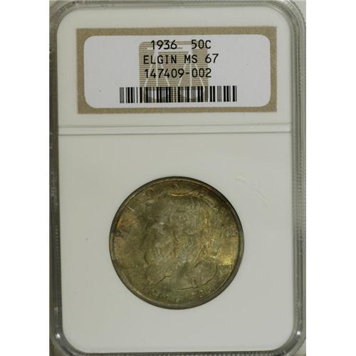 1936 50C Elgin MS67 NGC. The surfaces have their usual