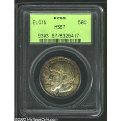 1936 50C Elgin MS67 PCGS. The rich golden-brown and sea-green patina lightens as it approaches the centers. A lustrous Superb Gem with an above average strike and immaculate fields. High grade Commemoratives with splendid original toning often command a premium in today's marketplace. Important notice: We expect to be auctioning lots at the rate of 200-250 per hour. Sometimes eBay Premier live bid software cannot keep up with that pace, so we strongly recommend that you place a realistic proxy bid now as insurance to avoid disappointment. Also please note that all Heritage/CAA lots purchased through eBay Premier carry a 20% Buyer's Premium. Please make sure you read the Terms and Conditions.