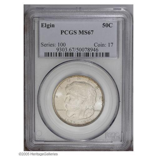 <B>1936<50C> Elgin MS67 PCGS.</B></I> This flashy Superb Gem displays virtually brilliant surfaces with a touch or two of light gold peripheral color. sharply struck, and no marks worthy of mention.