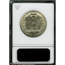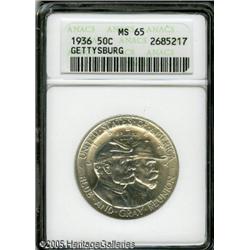 <B>1936 50C Gettysburg MS65 ANACS.</B></I> This flashy commemorative exhibits full brilliance. The design elements are sharply struck, and only a couple of trivial marks are noted on the Confederate and Union shields, the exposed areas of which are vulnerable to heavy contact marks. Lot:8490