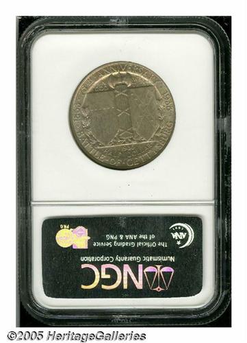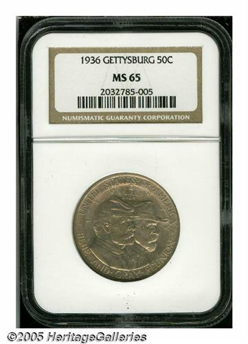 <B>1936<50C> Gettysburg MS65 NGC.</B></I> Boldly struck and lustrous, with a full coating of lilac-red patina on the obverse, and lighter pink-gray toning on the reverse. Well preserved and nearly blemish-free on both sides. A highly attractive Gem.<BR><I>From the Dr. Kurt Peters Collection.</B></I> From the Dr. Kurt Peters Collection.
