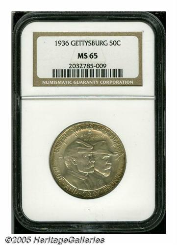 <B>1936<50C> Gettysburg MS65 NGC.</B></I> Lightly toned with smooth underlying satiny luster.<BR><I>From the Dr. Kurt Peters Collection.</B></I> From the Dr. Kurt Peters Collection.