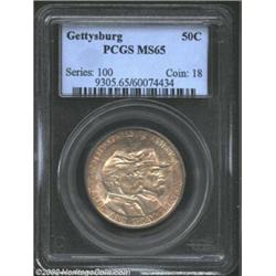 1936 50C Gettysburg MS65 PCGS. Well defined with light russet toning over full underlying luster and a single dark spot on the reverse. Important notice: We expect to be auctioning lots at the rate of 200-250 per hour. Sometimes eBay Premier live bid software cannot keep up with that pace, so we strongly recommend that you place a realistic proxy bid now as insurance to avoid disappointment. Also please note that all Heritage/CAA lots purchased through eBay Premier carry a 20% Buyer's Premium. Please make sure you read the Terms and Conditions.