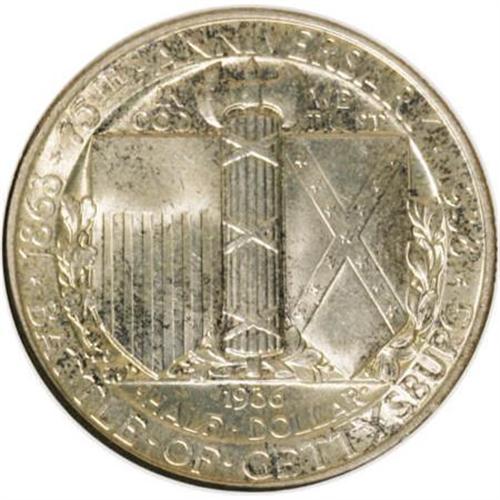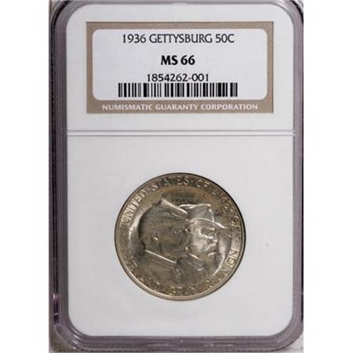 <B>1936 50C Gettysburg MS66 NGC.</B></I> NGC Census: (246/42). PCGS Population (530/83). Mintage: 26,928. Numismedia Wsl. Price for NGC/PCGS coin in MS66: $790. (#9305)<BR><I>From The Frank DuVall Collection of U.S. Commemoratives.</B></I><BR><BR><b>Shipping:</b> Coins & Currency (<a target="_blank" href="http://www.heritageauctions.com/common/shipping.php">view shipping information</a>\)