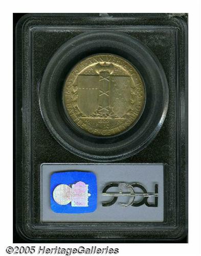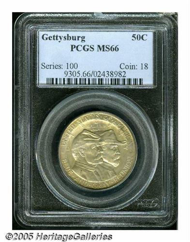 <B>1936<50C> Gettysburg MS66 PCGS.</B></I> Pale to moderate green-gold toning is accented with touches of rich rose around the peripheries. A well struck and immaculately preserved specimen, with ample luster and appeal for the grade.