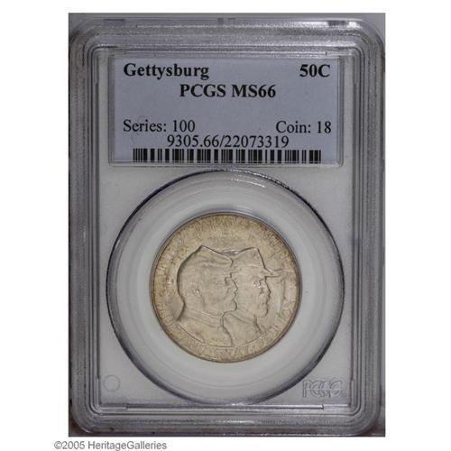 <B>1936<50C> Gettysburg MS66 PCGS.</B></I> Pearl-gray and tan-gold colors grace this satiny and sharply struck premium Gem. A well preserved example of this popular issue, struck two years prior to the 75th anniversary of the famous battle.