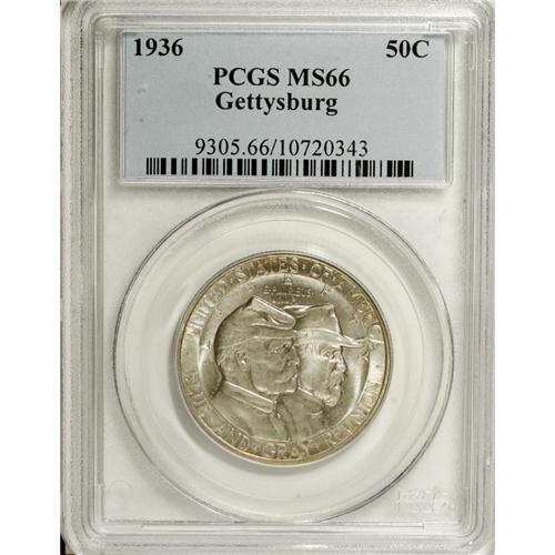 1936 50C Gettysburg MS66 PCGS. Subtle blue and lavende