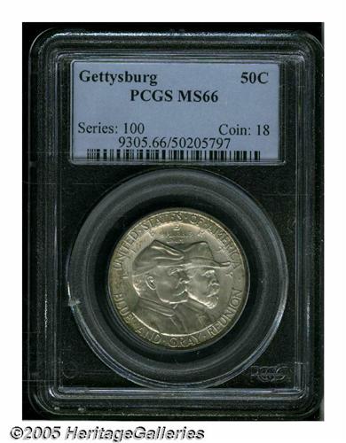 <B>1936<50C> Gettysburg MS66 PCGS.</B></I> Typically sharply struck with satiny surfaces that are remarkably clean, especially on the obverse, and a slight degree of scattered, speckled russet patina near the obverse and reverse peripheries.