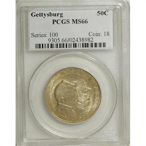 <B>1936 50C Gettysburg MS66 PCGS.</B></I> Pale to moderate green-gold toning is accented with touches of rich rose around the peripheries. A well struck and immaculately preserved specimen, with ample luster and appeal for the grade.<BR><BR><b>Shipping:</b> Coins & Currency (<a target="_blank" href="http://www.heritageauctions.com/common/shipping.php">view shipping information</a>)