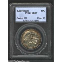 1936 50C Gettysburg MS67 PCGS. This is a visually impressive specimen with rich crimson-russet tab t