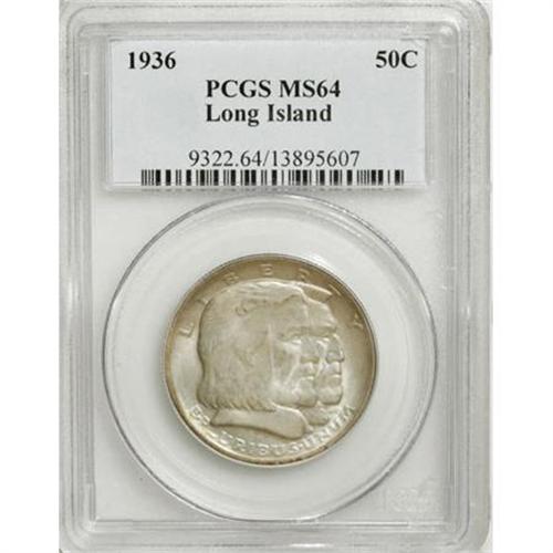 <B>1936 50C Long Island MS64 PCGS.</B></I> PCGS Population (1931/1354). NGC Census: (1558/1322). Mintage: 81,826. Numismedia Wsl. Price for NGC/PCGS coin in MS64: $115. (#9322)<BR><I>From The Frank DuVall Collection of U.S. Commemoratives.</B></I><BR><BR><b>Shipping:</b> Coins & Currency (<a target="_blank" href="http://www.heritageauctions.com/common/shipping.php">view shipping information</a>\)