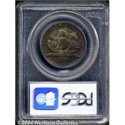 <B>1936<50C> Long Island MS65 PCGS.</B></I> Variegated crimson, lavender, green, and olive toning occupy both sides of this nicely struck Long Island commemorative. The surfaces are seemingly free of any significant marks. <BR><BR><B>Important notice:</B> Heritage usually auctions material at the rate of 200-250 lots per hour. On some occasions eBay Live bid software or the Internet may not be able to keep up with the pace of the auction. We recommend placing a realistic absentee bid now as insurance to avoid disappointment. Occasionally the auctioneer may eliminate or reject an eBay Live bid, and the auctioneer may also reopen a lot after the close of the eBay live bidding (usually because we missed an audience bid), and may reject your bid even if it shows you as the winning bidder. By bidding via eBay Live, you agree that Heritage may award the lot to another bidder at its sole discretion under the circumstances described above or any other reasonable circumstances. Since eBay bids are not shown to us until we open the lot on the floor, we treat those bids just like floor bids. In most cases the floor responds before the eBay bid is presented to us, due to Internet lag time, so for consistency we have made it a policy that floor bids are always considered first over tie eBay live bids. Also please note that all Heritage lots purchased through eBay Live carry a 20% Buyer's Premium. Please make sure you read the Terms and Conditions before you bid. </span></font></tr></table></td></tr></table>