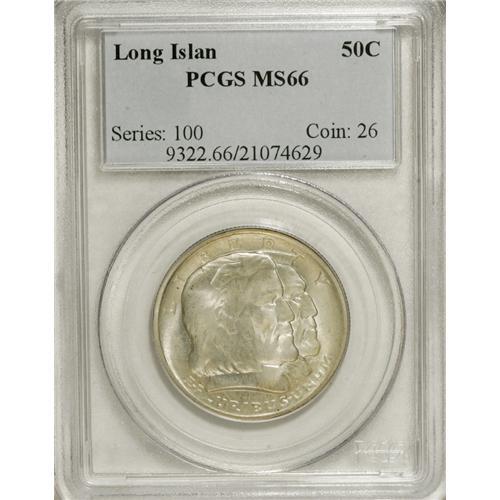 <B>1936 50C Long Island MS66 PCGS.</B></I> Softly lustrous beneath hazy green-gray patina. The devices are well struck overall, though a touch of softness is noted on the sails.<BR><BR><b>Shipping:</b> Coins & Currency (<a target="_blank" href="http://www.heritageauctions.com/common/shipping.php">view shipping information</a>)