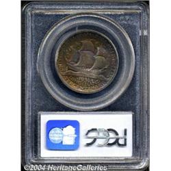 <B>1936<50C> Long Island MS66 PCGS.</B></I> Deep orange, green, and lavender toning adheres to the obverse fields, while the portraits remain mostly silver-gray. The entire reverse is deeply toned in multicolored shades of green, orange, purple, and crimson. The design elements are generally well struck, and few if any abrasions are apparent on either side. <BR><BR><B>Important notice:</B> Heritage usually auctions material at the rate of 200-250 lots per hour. On some occasions eBay Live bid software or the Internet may not be able to keep up with the pace of the auction. We recommend placing a realistic absentee bid now as insurance to avoid disappointment. Occasionally the auctioneer may eliminate or reject an eBay Live bid, and the auctioneer may also reopen a lot after the close of the eBay live bidding (usually because we missed an audience bid), and may reject your bid even if it shows you as the winning bidder. By bidding via eBay Live, you agree that Heritage may award the lot to another bidder at its sole discretion under the circumstances described above or any other reasonable circumstances. Since eBay bids are not shown to us until we open the lot on the floor, we treat those bids just like floor bids. In most cases the floor responds before the eBay bid is presented to us, due to Internet lag time, so for consistency we have made it a policy that floor bids are always considered first over tie eBay live bids. Also please note that all Heritage lots purchased through eBay Live carry a 20% Buyer's Premium. Please make sure you read the Terms and Conditions before you bid. </span></font></tr></table></td></tr></table>