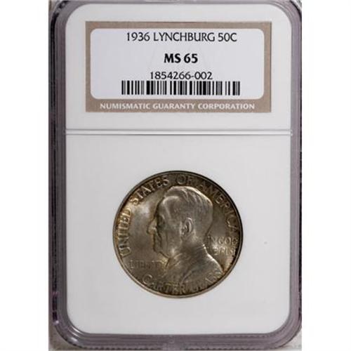 <B>1936 50C Lynchburg MS65 NGC.</B></I> NGC Census: (886/468). PCGS Population (1177/573). Mintage: 20,013. Numismedia Wsl. Price for NGC/PCGS coin in MS65: $300. (#9324)<BR><I>From The Frank DuVall Collection of U.S. Commemoratives.</B></I><BR><BR><b>Shipping:</b> Coins & Currency (<a target="_blank" href="http://www.heritageauctions.com/common/shipping.php">view shipping information</a>\)
