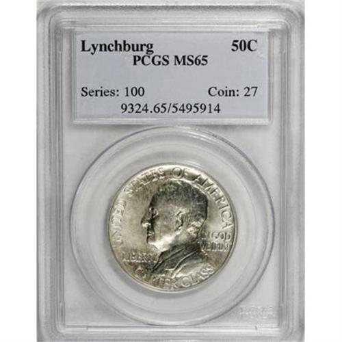 <B>1936 50C Lynchburg MS65 PCGS.</B></I> PCGS Population (1199/582). NGC Census: (894/471). Mintage: 20,013. Numismedia Wsl. Price for NGC/PCGS coin in MS65: $300. (#9324)<BR><BR><b>Shipping:</b> Coins & Currency (<a target="_blank" href="http://www.heritageauctions.com/common/shipping.php">view shipping information</a>)