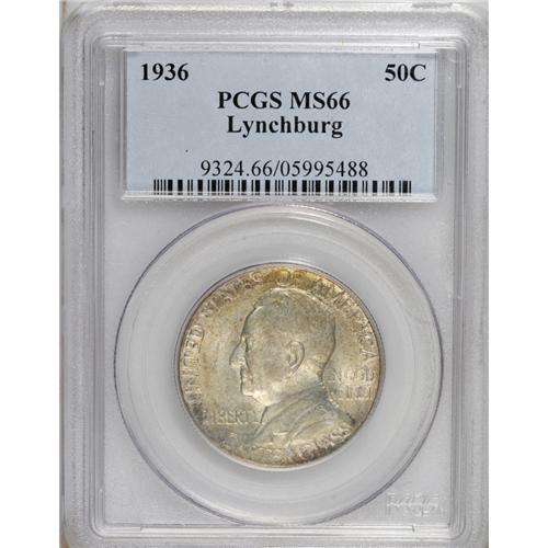 <B>1936 50C Lynchburg MS66 PCGS.</B></I> Whispers of golden-brown patina run over impeccably preserved surfaces that yield glittering luster. Pleasing definition is noted on the portrait of Carter Glass, notable for his role in creating the Federal Reserve.<BR><BR><b>Shipping:</b> Coins & Currency (<a target="_blank" href="http://www.heritageauctions.com/common/shipping.php">view shipping information</a>)