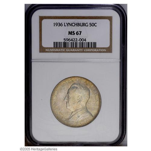 1936 50C Lynchburg MS67 NGC. Ethereal greenish yellow 1936[50C] Lynchburg MS67 NGC.