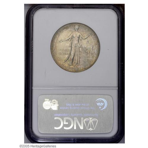 <B>1936<50C> Lynchburg MS67 NGC.</B></I> Ethereal greenish-yellow and pink toning adorns both sides. Few if any distracting marks are evident. Only four coins have been certified finer by NGC and PCGS combined (10/5).