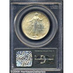 <B>1936 50C Lynchburg MS67 PCGS.</B></I> Well struck and satiny, with pleasing lime-gray and speckled apricot patina on both sides, and impeccably preserved surfaces that are virtually blemish-free, save for a single tiny nick on Liberty's chin. Population: 49 in 67, 0 finer (2/05).