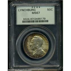 <table><tr><td><TABLE cellSpacing=0 cellPadding=0 width="100%" bgColor=#000000 border=0><TBODY> <TR><TD width="100%"><TABLE cellSpacing=1 cellPadding=3 width="100%" border=0><TBODY><TR><TD width="100%" bgColor=#79735c><FONT face=arial color=#ffffff size=3><B>Description</B> </FONT></TD></TR><TR><TD width="100%" bgColor=#ffffff><FONT face=arial size=2><B>1936 50C Lynchburg MS67 PCGS.</B></I> Spectacularly clean beneath several shades of pastel toning, deepening to crescents of crimson, violet, and lime-green color along the left side of both obverse and reverse. A prettier Lynchburg could hardly be imagined. Population: 44 in 67, 0 finer (10/03). </FONT></TD></TR></TBODY></TABLE></TD></TR></TBODY></TABLE><BR><A name=PricesRealized></A><TABLE cellSpacing=0 cellPadding=0 width="100%" bgColor=#000000 border=0><TBODY><TR><TD width="100%"><TABLE cellSpacing=1 cellPadding=3 width="100%" border=0><TBODY><TR><TD width="100%" bgColor=#79735c><A name=PR><FONT face=arial color=#ffffff size=3><B>Previous Prices from Heritage Auctions</B> </FONT></A></TD></TR><TR><TD bgColor=#f6f6ed><TABLE cellSpacing=0 cellPadding=0 width="100%" border=1><TBODY><TR><TD align=middle width="33%"><B>Date</B></TD><TD align=middle width="33%"><B>Service</B></TD><TD align=middle width="33%"><B>Price</B></TD></TR><TR bgColor=whitesmoke><TD width="33%"><B>04/22/2003</B></TD><TD width="33%">PCGS</TD><TD width="33%">$1,900.95</TD></TR><TR bgColor=whitesmoke><TD width="33%"><B>04/08/2003</B></TD><TD width="33%">PCGS</TD><TD width="33%">$1,955.00</TD></TR><TR bgColor=whitesmoke><TD width="33%"><B>03/11/2003</B></TD><TD width="33%">NGC</TD><TD width="33%">$1,139.65</TD></TR><TR bgColor=whitesmoke><TD width="33%"><B>11/27/2001</B></TD><TD width="33%">NGC</TD><TD width="33%">$900.00</TD></TR><TR bgColor=whitesmoke><TD width="33%"><B>06/27/2000</B></TD><TD width="33%">NGC</TD><TD width="33%">$1,050.00</TD></TR><TR bgColor=whitesmoke><TD width="33%"><B>09/20/2003</B></TD><TD width="33%">PCGS</TD><TD width="33%">$1,782.50</TD></TR><TR bgColor=whitesmoke><TD width="33%"><B>03/23/2003</B></TD><TD width="33%">PCGS</TD><TD width="33%">$1,725.00</TD></TR><TR bgColor=whitesmoke><TD width="33%"><B>09/28/2002</B></TD><TD width="33%">PCGS</TD><TD width="33%">$1,955.00</TD></TR><TR bgColor=whitesmoke><TD width="33%"><B>01/12/2002</B></TD><TD width="33%">PCGS</TD><TD width="33%">$3,450.00</TD></TR><TR bgColor=whitesmoke><TD width="33%"><B>01/05/2001</B></TD><TD width="33%">NGC</TD><TD width="33%">$1,380.00</TD></TR><TR bgColor=whitesmoke><TD width="33%"><B>01/05/2001</B></TD><TD width="33%">NGC</TD><TD width="33%">$1,495.00</TD></TR><TR bgColor=whitesmoke><TD width="33%"><B>08/07/2000</B></TD><TD width="33%">NGC</TD><TD width="33%">$862.50</TD></TR><TR bgColor=whitesmoke><TD width="33%"><B>02/11/2000</B></TD><TD width="33%">PCGS</TD><TD width="33%">$1,552.50</TD></TR><TR bgColor=whitesmoke><TD width="33%"><B>08/13/1999</B></TD><TD width="33%">PCGS</TD><TD width="33%">$1,437.50</TD></TR><TR bgColor=whitesmoke><TD width="33%"><B>08/07/1999</B></TD><TD width="33%">NGC</TD><TD width="33%">$787.75</TD></TR><TR bgColor=whitesmoke><TD width="33%"><B>02/12/1999</B></TD><TD width="33%">PCGS</TD><TD width="33%">$1,955.00</TD></TR><TR bgColor=whitesmoke><TD width="33%"><B>06/06/1998</B></TD><TD width="33%">NGC</TD><TD width="33%">$1,150.00</TD></TR><TR bgColor=whitesmoke><TD width="33%"><B>11/21/1997</B></TD><TD width="33%">NGC</TD><TD width="33%">$935.00</TD></TR><TR bgColor=whitesmoke><TD width="33%"><B>01/06/1996</B></TD><TD width="33%">PCGS</TD><TD width="33%">$1,650.00</TD></TR><TR bgColor=whitesmoke><TD width="33%"><B>08/19/1995</B></TD><TD width="33%">PCGS</TD><TD width="33%">$1,595.00</TD></TR><TR bgColor=whitesmoke><TD width="33%"><B>08/19/1995</B></TD><TD width="33%">NGC</TD><TD width="33%">$1,155.00</TD></TR><TR bgColor=whitesmoke><TD width="33%"><B>06/02/1995</B></TD><TD width="33%">NGC</TD><TD width="33%">$1,540.00</TD></TR><TR bgColor=whitesmoke><TD width="33%"><B>03/04/1995</B></TD><TD width="33%">NGC</TD><TD width="33%">$1,375.00</TD></TR><TR bgColor=whitesmoke><TD width="33%"><B>07/27/1993</B></TD><TD width="33%">NGC</TD><TD width="33%">$3,080.00</TD></TR></TBODY></TABLE></TD></TR><TR><TD bgColor=#ffffff><FONT face=arial size=1 ?>PLEASE NOTE: All prices realized reflect the final hammer price PLUS the buyer's premium in auctions that charge a buyer's premium. Each item has a notation at the top of the listing indicating whether that lot included a buyer's premium. Example: A item that sells with a final hammer price of $100 and a 20% buyer's premium will display with a price realized of $120. All information listed is intended to be as accurate as possible, but errors are possible. Please use this guide carefully and inform us of any inaccuracies. </FONT></TD></TR></TBODY></TABLE></TD></TR></TBODY></TABLE><BR><TABLE cellSpacing=0 cellPadding=0 width="100%" bgColor=#000000 border=0><TBODY><TR><TD width="100%"><TABLE cellSpacing=1 cellPadding=3 width="100%" border=0><TBODY><TR><TD width="100%" bgColor=#79735c colSpan=6><FONT face=arial color=#ffffff size=3><B>Price Guide*</B> </FONT></TD></TR><TR bgColor=#f6f6ed><TD align=middle><B>Grade</B> </TD><TD align=middle><B>Coin World<BR>(Trends)</B> </TD><TD align=middle><B>Numismedia<BR>Retail</B> </TD><TD align=middle><B>Numismedia<BR>Wholesale</B> </TD><TD align=middle><B>Coin<BR>Universe</B> </TD><TD align=middle><B>Heritage<BR>Value Index</B> </TD></TR><TR bgColor=#ffffff><TD align=middle>66</TD><TD align=right>$900.00</TD><TD align=right>$590.00</TD><TD align=right>$472.00</TD><TD align=right>$625.00</TD><TD align=right>$441.88</TD></TR><TR style="FONT-WEIGHT: bold" bgColor=#cccfdd><TD align=middle>67</TD><TD align=right>$2,500.00</TD><TD align=right>---</TD><TD align=right>$1,575.00</TD><TD align=right>$2,650.00</TD><TD align=right>$1,752.67</TD></TR><TR bgColor=#ffffff><TD align=middle>68</TD><TD align=right>---</TD><TD align=right>---</TD><TD align=right>---</TD><TD align=right>---</TD><TD