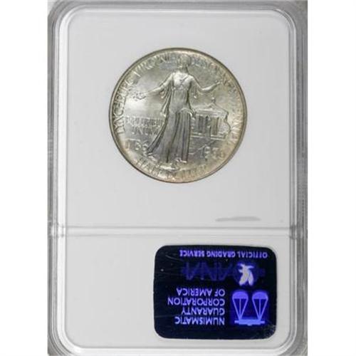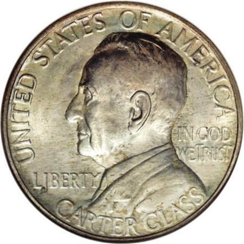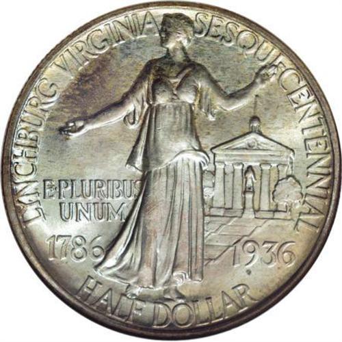 <B>1936 50C Lynchburg MS68 NGC.</B></I> The Lynchburg halves, limited to 20,000 pieces plus 13 assay coins, found widespread distribution. No sizeable hoards ever materialized, and today even Gem examples are elusive. Soft gold and sky-blue patina envelops most of the shining surfaces of this amazingly well preserved piece, though small slivers of brilliance peek through on the reverse. NGC has certified just five Lynchburg halves at MS68, while PCGS has graded none any finer than MS67 (11/07).<BR><BR><b>Shipping:</b> Coins & Currency (<a target="_blank" href="http://www.heritageauctions.com/common/shipping.php">view shipping information</a>)
