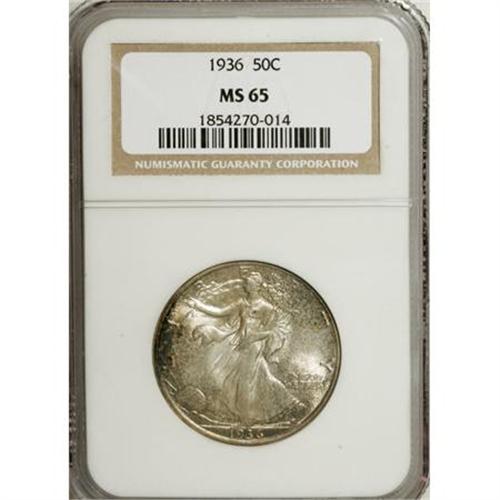 <B>1936 50C MS65 NGC.</B></I> NGC Census: (959/538). PCGS Population (1621/773). Mintage: 12,617,901. Numismedia Wsl. Price for NGC/PCGS coin in MS65: $328. (#6598)<BR><BR><B>Coin Engraver:</B> Adolph A. Weinman<BR><BR><b>Shipping:</b> Coins & Currency (<a target="_blank" href="http://www.heritageauctions.com/common/shipping.php">view shipping information</a>)