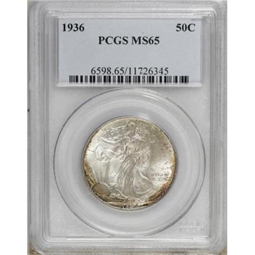 <B>1936 50C MS65 PCGS.</B></I> PCGS Population (1660/798). NGC Census: (977/559). Mintage: 12,617,901. Numismedia Wsl. Price for NGC/PCGS coin in MS65: $270. (#6598)<BR><BR><B>Coin Engraver:</B> Adolph A. Weinman<BR><BR><b>Shipping:</b> Coins & Currency (<a target="_blank" href="http://www.heritageauctions.com/common/shipping.php">view shipping information</a>)