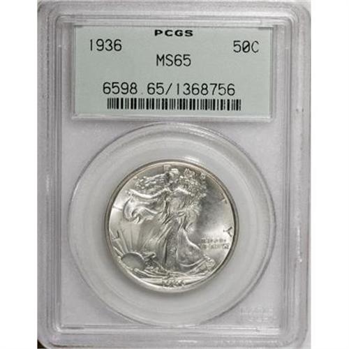 <B>1936 50C MS65 PCGS.</B></I> PCGS Population (1660/797). NGC Census: (973/541). Mintage: 12,617,901. Numismedia Wsl. Price for NGC/PCGS coin in MS65: $270. (#6598)<BR><BR><B>Coin Engraver:</B> Adolph A. Weinman<BR><BR><b>Shipping:</b> Coins & Currency (<a target="_blank" href="http://www.heritageauctions.com/common/shipping.php">view shipping information</a>)